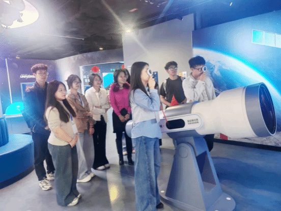 走进科技前沿,体验创新成果。 在昌吉科技馆,师生依次参观了“红色科学路”“绿色新征程”“蔚蓝复兴梦” 主题展厅,沉浸式体验了航天航空、人工智能、机械原理等多个领域前沿技术应用场景。通过现场讲解和实操互动,直观感受了科技赋能社会发展、服务民生需求的强大力量,进一步深化了对“科技是第一生产力”的理解。师生纷纷表示,作为新时代青年党员、入党积极分子必须增强科技素养,主动拥抱科技变革,在实习岗位和今后工作中争当科技应用的先行者、教育创新的推动者。