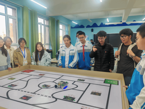 深入校园科创,感受育人实践。 在昌吉市第九中学飞行一品工作室,师生近距离观摩无人机组装、编程调试操作流程、亲手操控塞斯纳模拟机、沉浸式体验测风修正、飞越天山的航线规划,亲身感受科技创新在基础教育阶段落地生根。走进学校实验中心,与学校科创社团学生围绕科创产品设计、编程应用等展开深度交流,分享创新思路与实践经验。学生党员苏静静说:“与九中学生的互动交流让我收获颇丰,在模拟飞行体验和科创产品讨论中,我看到了青少年的创新活力,也意识到作为党员实习支教教师,更要发挥模范带头作用,主动搭建知识传递平台,引导青年学生树立科学精神,培养创新思维。”