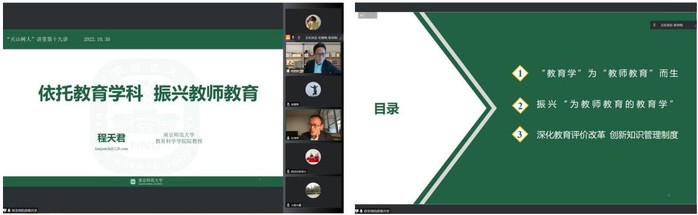 10月30日,南京师范大学大学程天君教授作了题为《依托教育学科,振兴教师教育》的学术报告。程天君教授首先明确了“教育学”与“教师教育”的关系,进而结合南京南京师范大学案例进行了阐释。最后,提出了要振兴“为教师教育的教育学”的方法论观点。