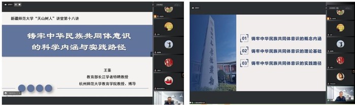10月26日,杭州师范大学大学王鉴教授作了题为《铸牢中华民族共同体意识教育的科学内涵与实践路径》的学术报告。报告由铸牢中华民族共同体意识的概念内涵、铸牢中华民族共同体意识的理论基础、铸牢中华民族共同体意识的实践路径三部分组成,深入剖析了“中华民族”“共同体”“意识”“铸牢”的内涵,阐述了让民族团结、国家统一、民族复兴成为新时代的主旋律,为实现中华民族伟大复兴打下良好的现实基础的目标方向。