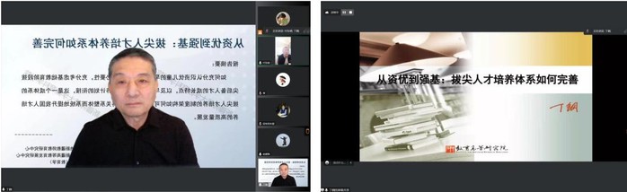 10月19日,华东师范大学教育高等研究院院长丁钢教授作了题为《从资优到强基:拔尖人才培养体系如何完善》的学术报告。报告分为背景与概况、问题与讨论两大部分,梳理了国际国内资优政策与推进状况,整理了我国在基础教育阶段关于拔尖后备人才培养和选拔的制度以及高等教育中的拔尖人才计划,结合国内外从资优到拔尖人才教育的研究,探讨了其中值得关注的问题,就如何充分认识资优儿童的早期发现与培育的必要性,提出了思考。