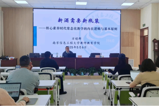 “天山树人”讲堂第七十四讲在文育楼108室天山树人讲堂举办。南京信息工程大学教师教育学院教师、硕士生导师、华东师范大学教育学博士、上海学习素养课程研究所兼职研究员方超群作了题为《新酒需要新瓶装——核心素养时代常态化教学的内在逻辑与基本原则》的学术讲座。学院140余位师生聆听讲座,讲座由学院副院长马秀麟教授主持。