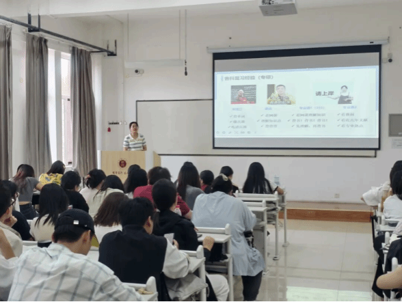 大会第一个环节为“考研动员”。贾玲、周丽从当前就业形势、社会人才需求等方面,分析了考研、升学的重要价值,希望同学们认清考研形势、明确考研目标、坚定考研信心。